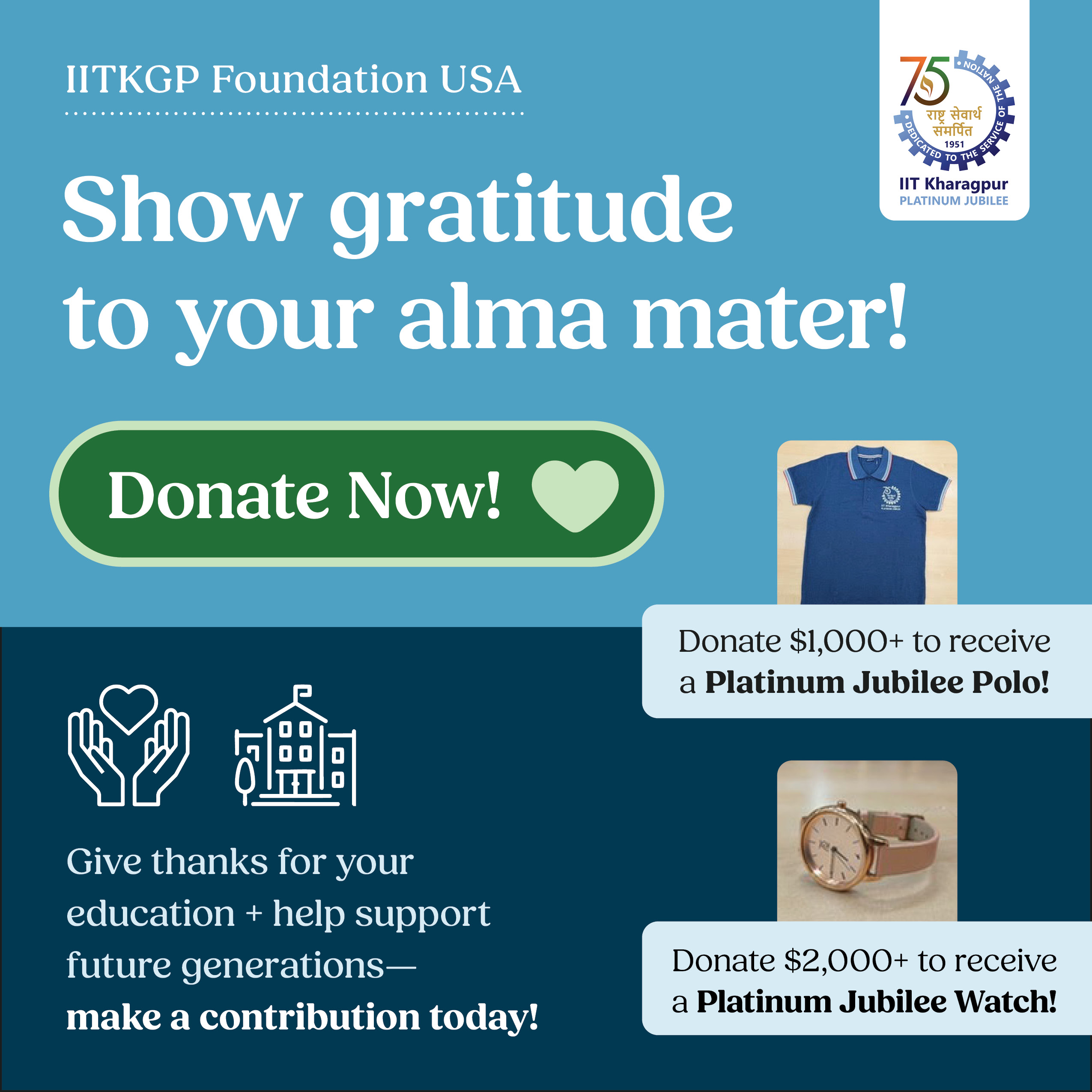 The IITKGP Foundation is registered as a non-profit organization with the US Internal Revenue Service under Section 501(c)(3) of the Internal Revenue Code. All contributions to the IITKGP Foundation are tax-deductible for only US taxpayers. Our US Federal Tax ID is: 47-0747227